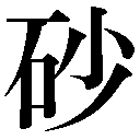 {名}すな。ごく細かい岩石の粒。いさご。転じて、すなのように小粒で、ざらざらした物。〈同義語〉