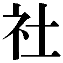 {名}その地の代表的な木を、土地神のかたしろとしたもの。▽のち、その土地にゆかりのある豪族や将軍をまつる。「社主」「哀公問社於宰我=哀公社ヲ宰我ニ問フ」〔→論語〕