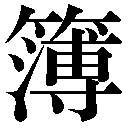 {名}文字を書く薄い竹のふだ。また、文字などを書くために、紙を薄くとじたもの。帳面。「帳簿」「簿冊」「簿書(書類)」