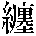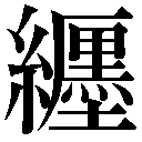会意兼形声。「糸+音符廛テン(ある所にへばりつく)」。ひもや布を一か所にへばりつくようにまきつけること。