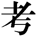 {動・名}かんがえる(カンガフ)。かんがえ(カンガヘ)。曲がりくねって奥までかんがえる。あれこれとつきつめる。思いめぐらしたすえ出た意見。また、その意見を示した論文。〈同義語〉→攷。〈類義語〉→究。「考究」「熟考」「小学考」「以其時考之、則可矣=ソノ時ヲモッテコレヲ考フレバ、スナハチ可ナリ」〔→孟子〕