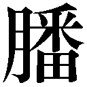 複数辞典一括検索+- (非使用)広辞苑大辞林新辞林大辞泉古語NHK 日本語発音アクセント辞典日国明鏡国語辞典新明解漢字源必携類類義使分大シ英辞郎研究社新英和大辞典ジーニアス英和大辞典ことわざ- (非使用)広辞苑大辞林新辞林大辞泉古語NHK 日本語発音アクセント辞典日国明鏡国語辞典新明解漢字源必携類類義使分大シ英辞郎研究社新英和大辞典ジーニアス英和大辞典ことわざ- (非使用)広辞苑大辞林新辞林大辞泉古語NHK 日本語発音アクセント辞典日国明鏡国語辞典新明解漢字源必携類類義使分大シ英辞郎研究社新英和大辞典ジーニアス英和大辞典ことわざ【膳夫】🔗⭐🔉【膳夫】 ゼンプ 周代の官名。宮廷の料理のことをつかさどる役人の長。料理人。カシワデ〔国〕→〈意味〉 【膳宰】🔗⭐🔉【膳宰】 ゼンサイ 周代の官名。宮廷の飲食・料理などをつかさどった。 【膳羞】🔗⭐🔉【膳羞】 ゼンシュウ いけにえとしてそなえられた獣の肉と、うまい食物。ごちそう。 【膳部】🔗⭐🔉【膳部】 ゼンブ 料理して膳にそろえてのせたごちそう。官名。宮廷の料理をつかさどる官。〔国〕料理人。▽「かしわで」とも読む。 【膰】🔗⭐🔉【膰】 16画 肉部 区点=7124 16進=6738 シフトJIS=E457 《音読み》 ハン/ボン〈fn〉 《訓読み》 ひもろぎ 《意味》 {名}ひもろぎ。宗廟ソウビョウ(みたまや)の祭りに供えた焼き肉。特に、ひらいてあぶった肉。〈類義語〉→燔ハン。 《解字》 会意兼形声。「肉+音符番(平らにひらく)」。 《熟語》 →熟語 【膰肉】🔗⭐🔉【膰肉】 ハンニク 祭りにそなえる焼き肉。ひもろぎ。 漢字源 ページ 3650。