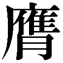 会意兼形声。上部は、人が鳥をむねの前にかかえこむことを示す会意文字。鷹ヨウ(たか)の原字。膺はそれを音符とし、肉をそえた字で、物をかかえこむ、むな板。