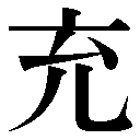 会意兼形声。育は「子の逆形(頭を下にして出産する幼児)+肉」の会意文字。幼児が肥立ちよく成長するのを育という。充は「儿(人体)+音符育の略体」。人体が肉づきよく成長することを示し、中身がいっぱいになるの意を含む。→育