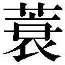 会意兼形声。衰は、端をばらばらにきった粗末な衣。蓑は「艸+音符衰」で、端をそろえてない草の衣。