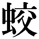 複数辞典一括検索+- (非使用)広辞苑大辞林新辞林大辞泉古語NHK 日本語発音アクセント辞典日国明鏡国語辞典新明解漢字源必携類類義使分大シ英辞郎研究社新英和大辞典ジーニアス英和大辞典ことわざ- (非使用)広辞苑大辞林新辞林大辞泉古語NHK 日本語発音アクセント辞典日国明鏡国語辞典新明解漢字源必携類類義使分大シ英辞郎研究社新英和大辞典ジーニアス英和大辞典ことわざ- (非使用)広辞苑大辞林新辞林大辞泉古語NHK 日本語発音アクセント辞典日国明鏡国語辞典新明解漢字源必携類類義使分大シ英辞郎研究社新英和大辞典ジーニアス英和大辞典ことわざ【蛬】🔗⭐🔉【蛬】 12画 虫部 区点=7363 16進=695F シフトJIS=E57E 《音読み》 キョウ/ク 《訓読み》 きりぎりす 《意味》 {名}きりぎりす。虫の名。また、こおろぎ。「蟋蟀シッシュツ」とも。〈同義語〉→蛩 《解字》 形声。「虫+音符共」。 【蛟】🔗⭐🔉【蛟】 12画 虫部 区点=7364 16進=6960 シフトJIS=E580 《音読み》 コウ(カウ)/キョウ(ケウ)〈jio〉 《訓読み》 みずち(みづち) 《意味》 {名}みずち(ミヅチ)。想像上の動物の名。竜の一種。へびに似てからだがよじれ四足をもつ。水を好み、大水をおこすという。 《解字》 会意兼形声。「虫+音符交(よじれる)」。 《熟語》 →熟語 →下付・中付語 →故事成語 【蛟人】🔗⭐🔉【蛟人】 コウジン =鮫人。南海にすむという人魚。あや織りの布を織り、真珠の涙を流すという。「割之珠落盤、不待蛟人泣=コレヲ割ケバ珠ハ盤ニ落ツ、蛟人ノ泣ヲ待タズ」〔→梅尭臣〕 【蛟竜】🔗⭐🔉【蛟竜】 コウリョウ・コウリュウ みずちと、竜。水中にすみ、雷雨を呼ぶ。▽一説に、うろこのある竜。「水深波浪濶、無使蛟竜得=水深クシテ波浪濶シ、蛟竜ヲシテ得シムルコトナカレ」〔→杜甫〕 【蛟竜得水】🔗⭐🔉【蛟竜得水】 コウリョウミズヲウ・コウリュウミズヲウ〈故事〉水を好むみずちが水を得る。▽君主たる者が人民を得て威信がそなわったときや、英雄がよい時勢を得たときにそのことを形容することば。「蛟竜得雲雨=コウリョウウンウをう」とも。 【蛟蛇】🔗⭐🔉【蛟蛇】 コウダ 大蛇ダイジャ。おろち。「文字鬱律蛟蛇走=文字鬱律トシテ蛟蛇走ル」〔→蘇軾〕 【蛤】🔗⭐🔉【蛤】 12画 虫部 区点=4026 16進=483A シフトJIS=94B8 《音読み》 コウ(カフ)/コウ(コフ)〈g・h〉 《訓読み》 はまぐり 《意味》 {名}はまぐり。二枚の貝がらをあわせた貝。「蜃蛤シンコウ」 {名}かえるの一種。かじか。 《解字》 会意兼形声。「虫+音符合コウ(あわせてふさぐ)」。 《熟語》 →熟語 →下付・中付語 漢字源 ページ 3909。