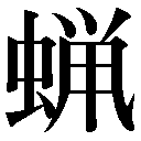 会意兼形声。右側はたくさん集める、集めて封じこめる意を含む字(音リョウ)の略体。蝋はそれを音符とし、虫を加えた字。