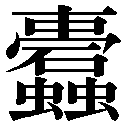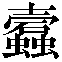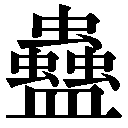 会意。「蟲(むし)+皿(さら)」。多くの虫を皿に入れてふたをかぶせ、共食いさせることをあらわす。