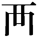 上からふたをかぶせたさま。おおう、かぶせるなどの意をあらわす。賈・覆・覈などの字の上部に含まれる。西は別字だが、楷書カイショでは混同される。