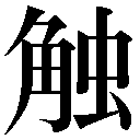 {動}ふれる(フル)。おきてを犯す。また、こわいものにあたって、害を受ける。「抵触」「触諱=諱ニ触ル」「去礼義触刑法=礼義ヲ去リテ刑法ニ触ル」〔→漢書〕