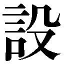 {動}もうける(マウク)。そなえつける。また、くっつけておく。形をととのえておく。「布設」「設色」「設門外=門外ニ設ク」〔→儀礼〕