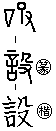 {動}もうける(マウク)。新しくつくる。こしらえる。「建設」「設制度=制度ヲ設ク」〔→礼記〕