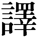 会意兼形声。譯の右側の字(音エキ)は「目+幸(手かせ)」の会意文字で、手かせをはめた罪人をひとりずつ並べて、面通しすること。擇(=択。一連に並べてえらぶ)の原字。譯はそれを音符とし、言を加えた字で、ことばを選んで、一つずつ並べつなぐこと。