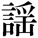 形声。右側の字は、まんべんなくこねることで、ここでは単に音をあらわす。謠は、声を長くのばし節をつけてうたうこと。