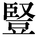 型にじっとたつ。また、じっとたてる。〈同義語〉→竪・→樹。「豎立ジュリツ(=竪立)」