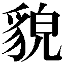 会意兼形声。「豸(けもの)+音符皃ボウ(あたまと足のある人の姿)」で、人や動物のあらましの姿をあらわす。