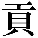 会意兼形声。工コウは、上下の二線の間を縦の棒でつきぬいた姿を示す指事文字で、つらぬいて直通する意味をふくむ。貢は「貝+音符工」で、地方でとれた物産をかついで朝廷におさめること。