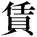 {名}労働力や物品を利用した代としてあたえる金銭。「賃金(賃銀)」「租賃(かり代)」