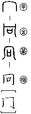 象形。はるかかなたの境界を示す。▽場所を示す口印を中に加えた字はその異体字。炯ケイ・迥ケイなどの音符となる。
