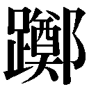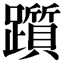 複数辞典一括検索+- (非使用)広辞苑大辞林新辞林大辞泉古語NHK 日本語発音アクセント辞典日国明鏡国語辞典新明解漢字源必携類類義使分大シ英辞郎研究社新英和大辞典ジーニアス英和大辞典ことわざ- (非使用)広辞苑大辞林新辞林大辞泉古語NHK 日本語発音アクセント辞典日国明鏡国語辞典新明解漢字源必携類類義使分大シ英辞郎研究社新英和大辞典ジーニアス英和大辞典ことわざ- (非使用)広辞苑大辞林新辞林大辞泉古語NHK 日本語発音アクセント辞典日国明鏡国語辞典新明解漢字源必携類類義使分大シ英辞郎研究社新英和大辞典ジーニアス英和大辞典ことわざ【躍起】🔗⭐🔉【躍起】 ヤッキ おどりあがる。〔国〕せきこんでむきになる。 【躍馬】🔗⭐🔉【躍馬】 ヤクバ ウマヲオドラス勢いよく馬を走らせる。漢の公孫述のこと。▽晋シンの左思サシの「蜀都賦」に「公孫躍馬而称帝=公孫ハ馬ヲ躍ラセテ帝ト称ス」とあることから。 【躍動】🔗⭐🔉【躍動】 ヤクドウ おどり動く。いきいきと活動すること。 【躍躍】🔗⭐🔉【躍躍】 ヤクヤク →〈意味〉テキテキ こおどりしながら走るようす。 【躓】🔗⭐🔉【躓】 22画 足部 区点=7721 16進=6D35 シフトJIS=E754 《音読み》 チ〈zh〉 《訓読み》 つまずく(つまづく) 《意味》 {動}つまずく(ツマヅク)。足が物につかえる。つまずいてたおれる。「顛躓テンチ」 {動}失敗する。しくじる。 《解字》 会意兼形声。「足+音符質チ(ぴったりと当たる、いっぱいにつかえる)」。 《熟語》 →熟語 →下付・中付語 【躓顛】🔗⭐🔉【躓顛】 チテン つまずいて倒れる。『躓仆チフ』 【躑】🔗⭐🔉【躑】 22画 足部 区点=7722 16進=6D36 シフトJIS=E755 《音読み》 テキ/ジャク(ヂャク)〈zh〉 《意味》 {動}短い距離だけ、つっと、まっすぐ進む。「躑躅テキチョク(二、三歩いっては止まる)」 《解字》 形声。「足+音符鄭テイ」。 《単語家族》 擲テキ(まっすぐなげる)と同系。 《熟語》 →熟語 漢字源 ページ 4325。