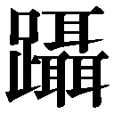 {動}ふむ。ふみつけて小さく砕く。ふみにじる。「蹂躙ジュウリン」