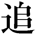 {動}おう(オフ)。先にいくもののあとをおう。ルートをたどっておいかける。〈類義語〉→逐チク。「追跡」「追我者誰也=我ヲ追フ者ハ誰ゾヤ」〔→孟子〕
