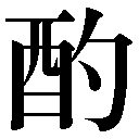 {動}くむ。(イ)ひしゃくでくみあげる。(ロ)酒をくむ。また、酒をついで飲む。〈同義語〉→勺。「我姑酌彼金罍=我姑ク彼ノ金罍ニ酌マン」〔→詩経〕