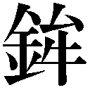 形声。「金+音符牟ボウ」で、障害をおかして、むりにつきかかる意を含む。
