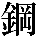 {名}はがね。かたくきたえた鉄。かたくて丈夫なものの代表とされる。「精鋼」