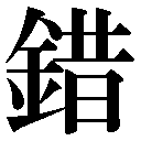{名・動}たてよこにぎざぎざにすじめをいれた金やすり。やすりでごしごしとみがく。「錯刀(やすり)」「它山之石、可以為錯=它山ノ石ハ、モッテ錯ト為スベシ」〔→詩経〕