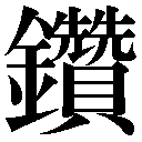 会意兼形声。「金+音符贊(力をあわせる、中心に集まる)」。力を一点に集中して穴をあけること。