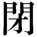 {動}とじる(トヅ)。とざす。とびらをあわせて入り口をしめる。入り口がしまる。ぴたりとくっつけて間をふさぐ。〈対語〉→開。〈類義語〉→関・→闔コウ。「禁閉」「密閉」「閉府庫=府庫ヲ閉ヅ」〔→左伝〕
