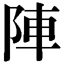 会意。陳チンの原字は「東(袋の形)二つ+攴(動詞の記号)」の会意文字。その東一つを略して、阜(土盛り→防御用のとりで)を加えたものが陳の本字。陣はその俗字。また、古文には「阜(土盛り)+音符申(のばす)」よりなる異体字もある。