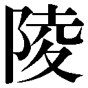 会意兼形声。右側の字(音リュウ)は「陸の略体+夂(あし)」の会意文字で、足の筋肉にすじめを入れるほど力んで丘に登ること。陵はそれを音符とし、阜(おか)を加えた字で、山の背のすじめ、つまり稜線リョウセンのこと。