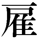 会意兼形声。「隹(とり)+音符戸(とびら、とじる)」で、かごの戸をとじて、中に鳥を飼うことをあらわす。転じて、人を家の中にまるがかえにしてやとう意に用いる。顧(かかえこむ)とも縁が近い。