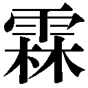会意兼形声。下部の字(音カ)は、手でベールをかぶることを示す会意文字。かぶせて隠す意を含む。霞はそれを音符とし、雨を加えた字で、水気がたなびいて物の姿を隠すもの。