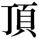 {名}いただき。頭のてっぺん。直線がT型につかえた上方の面。たっているもののいちばん高い所。「山頂」「頂上」「觝頂交跖=頂ニ觝レ跖ヲ交フ」〔→韓愈〕