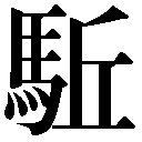 会意兼形声。「馬+音符區(=区。小さくかがむ)」。馬が背をかがめてはやがけすること。まがる、かがむの意を含む。