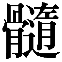 複数辞典一括検索+- (非使用)広辞苑大辞林新辞林大辞泉古語NHK 日本語発音アクセント辞典日国明鏡国語辞典新明解漢字源必携類類義使分大シ英辞郎研究社新英和大辞典ジーニアス英和大辞典ことわざ- (非使用)広辞苑大辞林新辞林大辞泉古語NHK 日本語発音アクセント辞典日国明鏡国語辞典新明解漢字源必携類類義使分大シ英辞郎研究社新英和大辞典ジーニアス英和大辞典ことわざ- (非使用)広辞苑大辞林新辞林大辞泉古語NHK 日本語発音アクセント辞典日国明鏡国語辞典新明解漢字源必携類類義使分大シ英辞郎研究社新英和大辞典ジーニアス英和大辞典ことわざ【骼】🔗⭐🔉【骼】 16画 骨部 区点=8178 16進=716E シフトJIS=E98E 《音読み》 カク/キャク〈g・g〉 《訓読み》 ほね/かばね 《意味》 {名}ほね。ほねぐみ。鳥や獣のかたいほね。〈類義語〉→格。「骨骼コッカク(=骨格)」 {名}かばね。風雨にさらされて肉がなくなり、ほねだけになったもの。〈類義語〉→骸ガイ。 《解字》 会意兼形声。「骨+音符各(かたくこちんとつかえる)」。 《単語家族》 格(こつんとつかえるしん棒)と同系。 《熟語》 →下付・中付語 【髀】🔗⭐🔉【髀】 18画 骨部 区点=8179 16進=716F シフトJIS=E98F 《音読み》 ヘイ/バイ〈b〉/ヒ 《訓読み》 もも 《意味》 {名}もも。足のひざから上の部分。また、ももの外側。「髀肉ヒニク(内ももの肉)」 {名}ももの外側の骨。また、大腿骨ダイタイコツのはまる骨盤の一部分。「髀骨ヒコツ」 《解字》 会意兼形声。「骨+音符卑(小さい、そばにくっつく)」。 《単語家族》 裨ヒ(そばにくっつく)と同系。 《熟語》 →熟語 →下付・中付語 →故事成語 【髀肉之嘆】🔗⭐🔉【髀肉之嘆】 ヒニクノタン =脾肉之歎。〈故事〉蜀ショクの劉備リュウビが、長い間馬に乗らなかったので、内ももに肉がついてしまったのを嘆いた故事。平和なので実力を発揮して功名をたてる機会のないことを嘆くことのたとえ。〔→蜀志〕 【拍髀】🔗⭐🔉【拍髀】 ヒヲウツ ももをたたく。喜び勇むさま。『搏髀ヒヲウツ・拊髀ヒヲウツ』 【髄】🔗⭐🔉【髄】 19画 骨部 [常用漢字] 区点=3181 16進=3F71 シフトJIS=9091 【髓】旧字旧字 23画 骨部 区点=8182 16進=7172 シフトJIS=E992 《常用音訓》ズイ 《音読み》 ズイ/スイ〈su〉 《名付け》 すね・なか 《意味》 {名}骨の中の柔らかい部分。「骨髄」 {名}植物の茎のしんの柔らかい部分。 {名}物事の中心。要点。精華。「神髄」 《解字》 会意兼形声。髓の右側の字は、外側の形に柔らかく従うこと。髓はそれを音符とし、骨を加えた字。骨の外わくに従う柔らかいゼラチン状のなかみ。 《熟語》 →熟語 →下付・中付語 漢字源 ページ 5041。