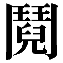 【鬩】 18画 鬥部  区点=8211 16進=722B シフトJIS=E9A9 《音読み》 ゲキ/ケキ/キャク〈x〉 《訓読み》 せめぐ 《意味》 {動}せめぐ。かっとしてあらそう。子どものけんかのように互いにあらそう。「兄弟鬩于牆=兄弟牆ニ鬩グ」〔→詩経〕 《解字》 会意。「鬥(あらそう)+兒(子ども)」。 《熟語》 →熟語 →下付・中付語 →故事成語