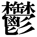 会意兼形声。鬱の原字は「臼(両手)+缶(かめ)+鬯(香草でにおいをつけた酒)」の会意文字で、かめにとじこめて酒ににおいをつける草。鬱はその略体を音符とし、林をそえた字で、木々が一定の場所にとじこめられて、こんもりと茂ることをあらわす。中に香りや空気がこもる意を含む。