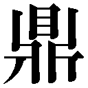 {名}かなえ(カナヘ)。三つの足と二つの耳のある器。もと、なべや食器として用いたが、のちには王侯の祭器、礼器となった。▽夏カの禹ウ王は九州から金(銅)を集めて九つの鼎をつくり、王位伝承の宝器とした。▽のちには、四足のものがあり、それを方鼎という。「鐘鼎ショウテイ」