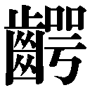 会意兼形声。「齒+音符禹ウ(へび、虫類の代表)」で、むしばのこと。