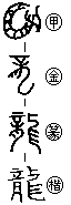 象形。もと、頭に冠をかぶり、胴をくねらせた大蛇ダイジャの形を描いたもの。それに、いろいろな模様をそえて龍の字となった。