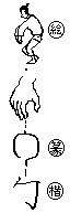 象形。人が前に物を抱きかかえ、からだをまるく曲げて包んだ姿を描いたもの。また、手や膜で物を包んだ姿と考えてもよい。包・抱・胞などの原字。