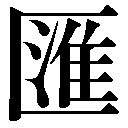 会意兼形声。淮カイ・エは「水+音符隹(かさなり、まるいうず)」の会意兼形声文字で、水が回流すること。匯は「匚(かこい)+音符淮」で、岸に囲まれた入り江の中を水がぐるぐると回る意を示す。
