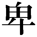 {形}ひくい(ヒクシ)。ひくい位にあるさま。〈対語〉→尊・→高。〈類義語〉→低。「非不肖也、位卑也=不肖ナルニアラザルナリ、位卑ケレバナリ」〔→韓非〕