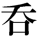 「口+音符天」の形声文字であるというが、疑わしい。天は夭ヨウ(人の首をかしげたさま)の変形で、呑トンは「夭+口」の会意文字と解すべきか。ぐっと上から下へ押し下げる意を含む。