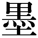 コク(=黒)は「煙突+炎」の会意文字で、煙突のふちに点々とすすのたまったさまを示す。墨は、「土+音符