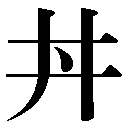 会意。「井(四角い井戸のわく)+・印(清い水のたまったさま)」で、清らかな水をあらわす。青(すみきってあおい)の下部に含まれる。ただし、のちには、井戸の清水を示す丼セイは井と書かれるようになった。わくを示す井ケイは、かたちを変えて形・型に含まれる。→青